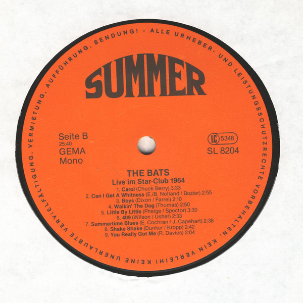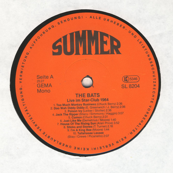 Es gibt noch eine Lp der Bats aus Anfang der 60'er auf Somerset Tony Cavanaugh And The Liverpool Triumphs.