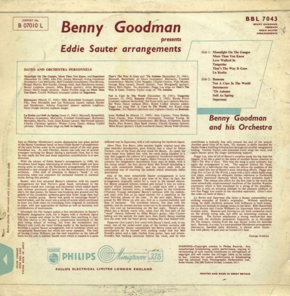 Auch bei uns gab es einen Trompeter namens Sauter, der aber mit Vornamen Kurt hieß und sich Cocky nannte und der permanent mit Eddie Sauter verwechelt wird. Da Cocky Sauter’s Forum eine Menge Daten über Eddie Sauter enthält scheint es mir sinnvoll, auch dort ergänzend, einmal nachzusehen (links klicken)..