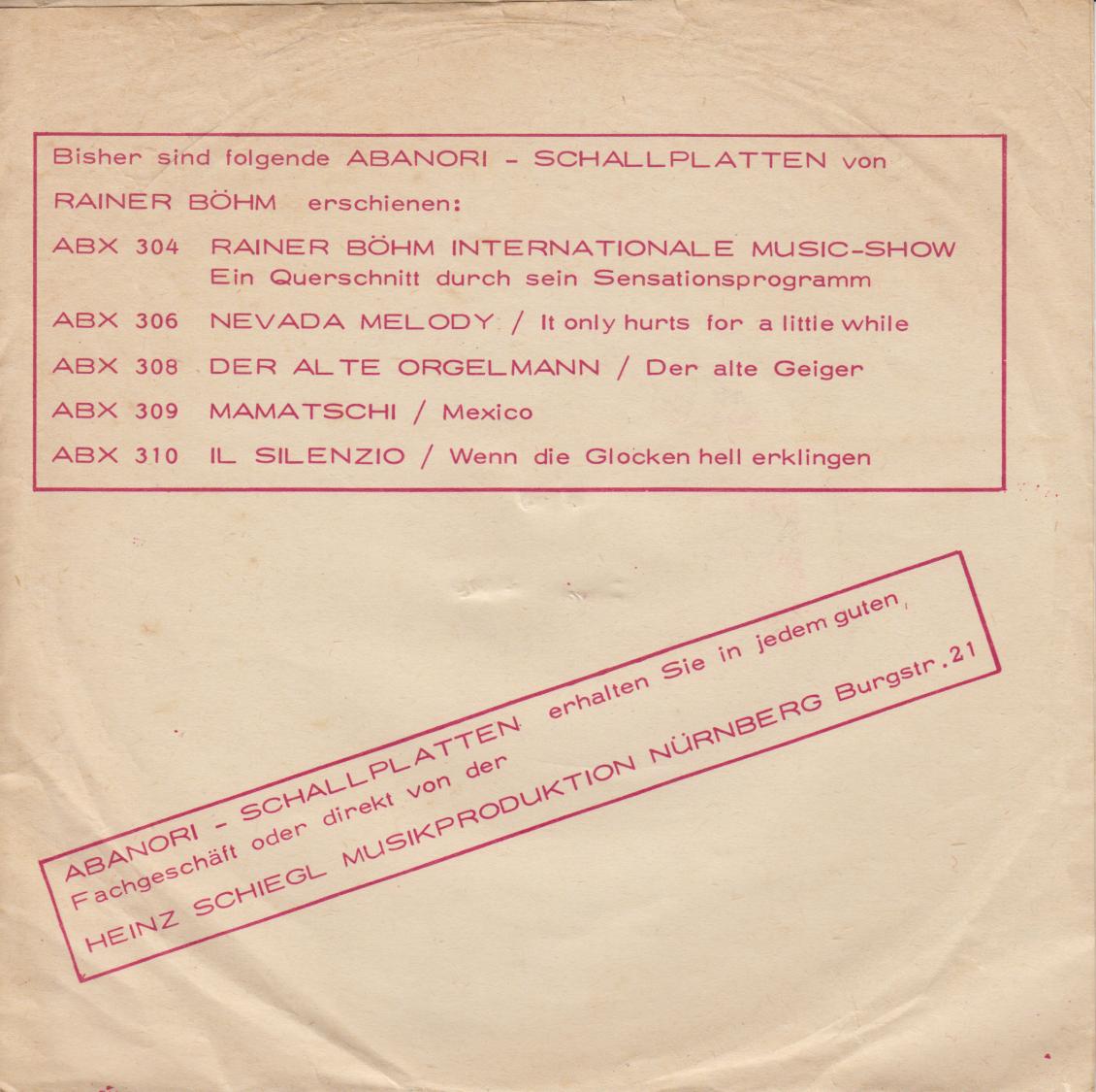 KITTLER, GÜNTHER, Sänger, Abanori 321 ("Blonde Nixe Im Bikini"/"Ich Pfeife Auf Die Südsee" & Die "Plattmacher aus der Kantine nach der 25. Runde (inclusive Technik)")