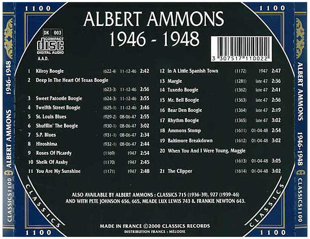 Albert Ammons war gewissermaßen einer der Gründerväter des Boogie Woogie-Pianos und ritt gemeinsam mit seinen Chicagoer Landsleuten Meade "Lux" Lewis und Jimmy Yancey in den späten 1930 er-Jahren kurzzeitig auf der Welle der nationalen Popularität dieses Genres. Er wurde in Chicago/Illinois als Sohn des damals 17-jährigen James Wesley Ammons aus Memphis/Tennessee und Anna Elizabeth Sherman aus Owensborough/Kentucky geboren. Einige Quellen geben den 23. September als Geburtsdatum an, aber es ist unklar, woher dieses Datum stammt. Öffentliche Aufzeichnungen seit seiner Geburt weisen eindeutig auf den 01. März hin. James und Anna hatten sieben Monate zuvor, am 09. August 1906, geheiratet. 1908 kam James Wesley Jr. zur Familie.