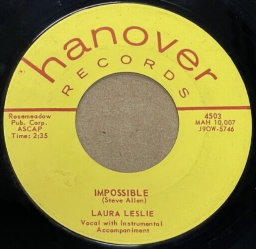06 58....4503....LAURA LESLIE vocal with instrumental accomp. ..La Santa Venuta (May The Saints Go With You) (45-MAH-10,006 J9OW-5745)/Impossible (45-MAH-10,007 J9OW-5746)