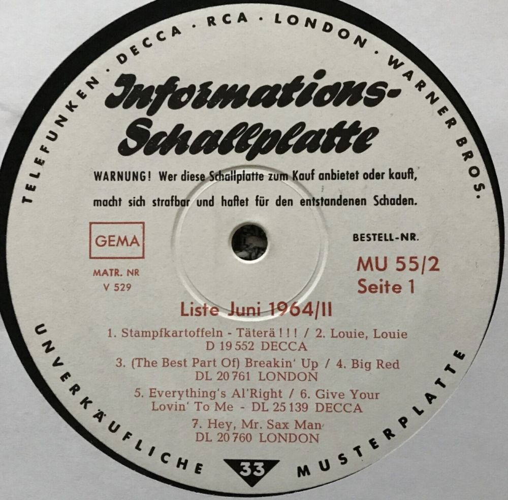 19552 "Stampf-Kartoffeln Tä-Tä-Rä!! (Mashed Potatoes-Medley)"/"Louie, Louie" & His NEW PLAYBOYS,