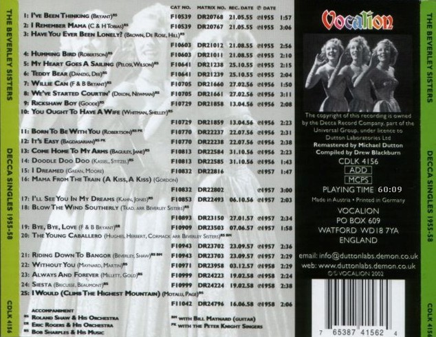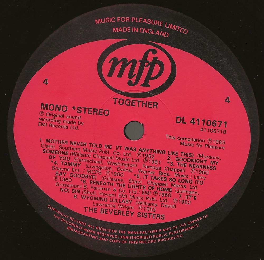 | Information: | BEVERLEY SISTERS DECCA (UK) EP DFE-6401 |