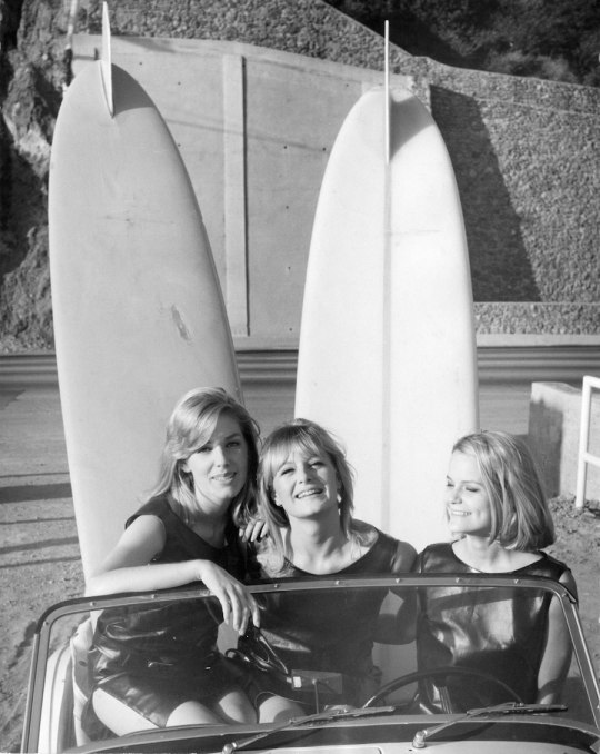 - Albumcover mit unveröffentlichten Fotos von Suzi Jane Hokoms Gruppe The Surf Bunnies aus den frühen 1960er Jahren