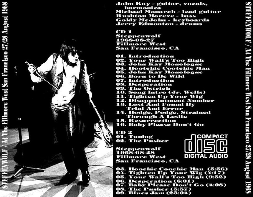 01.Move Over 02.Rock Me 03.I’m Movin’ On 04.Sookie Sookie 05.I’m Your Hootchie Cootchie Man 06.Hey Lawdy Mama 07.Desperation 08.Ride With Me 09.Snowblind Friend 10.Monster / Suicide / America 11.Magic Carpet Ride 12.Born To Be Wild 13.The Pusher Anhänge an diesem Beitrag Dateiname: Front.jpg Dateigröße: 200.76 KB Titel: Heruntergeladen: 74