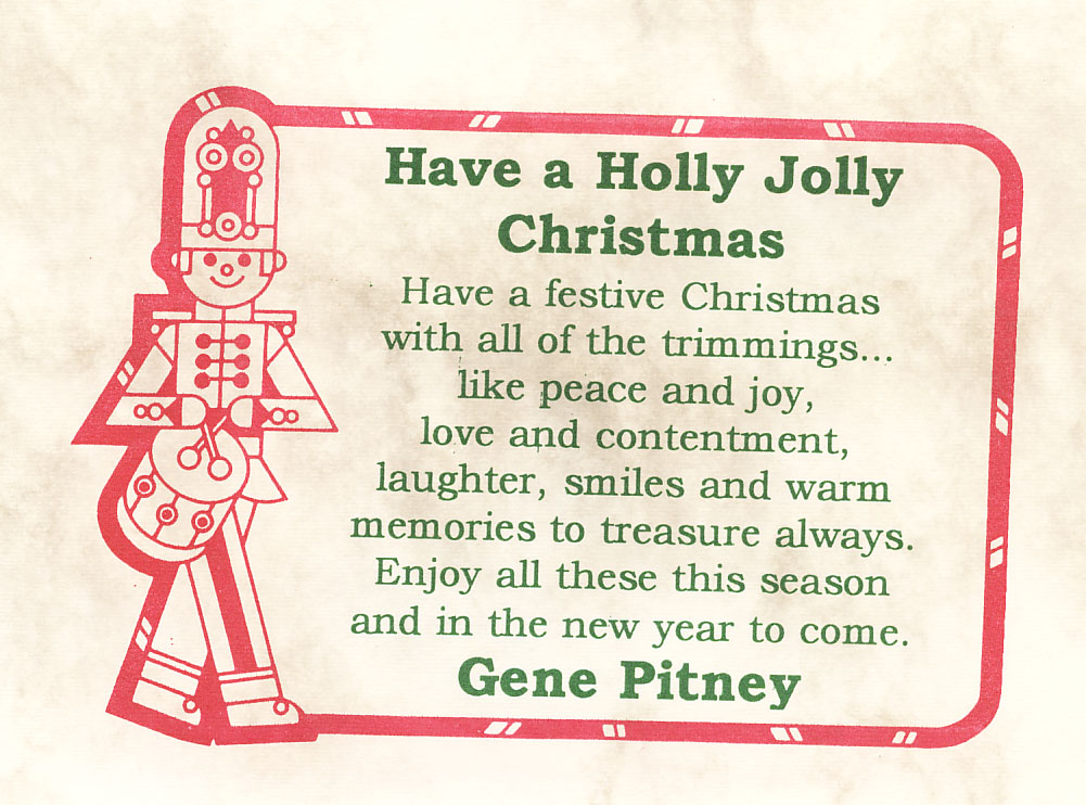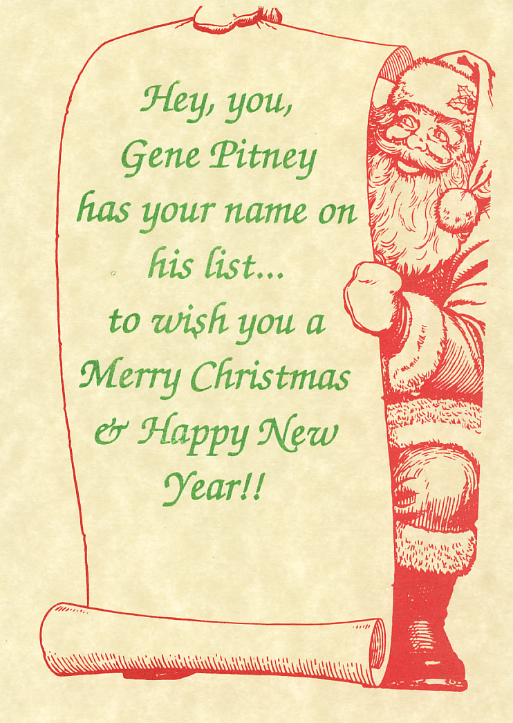 und da gerade Weihnachten ist, ein paar Wünsche von Gene an Alle.