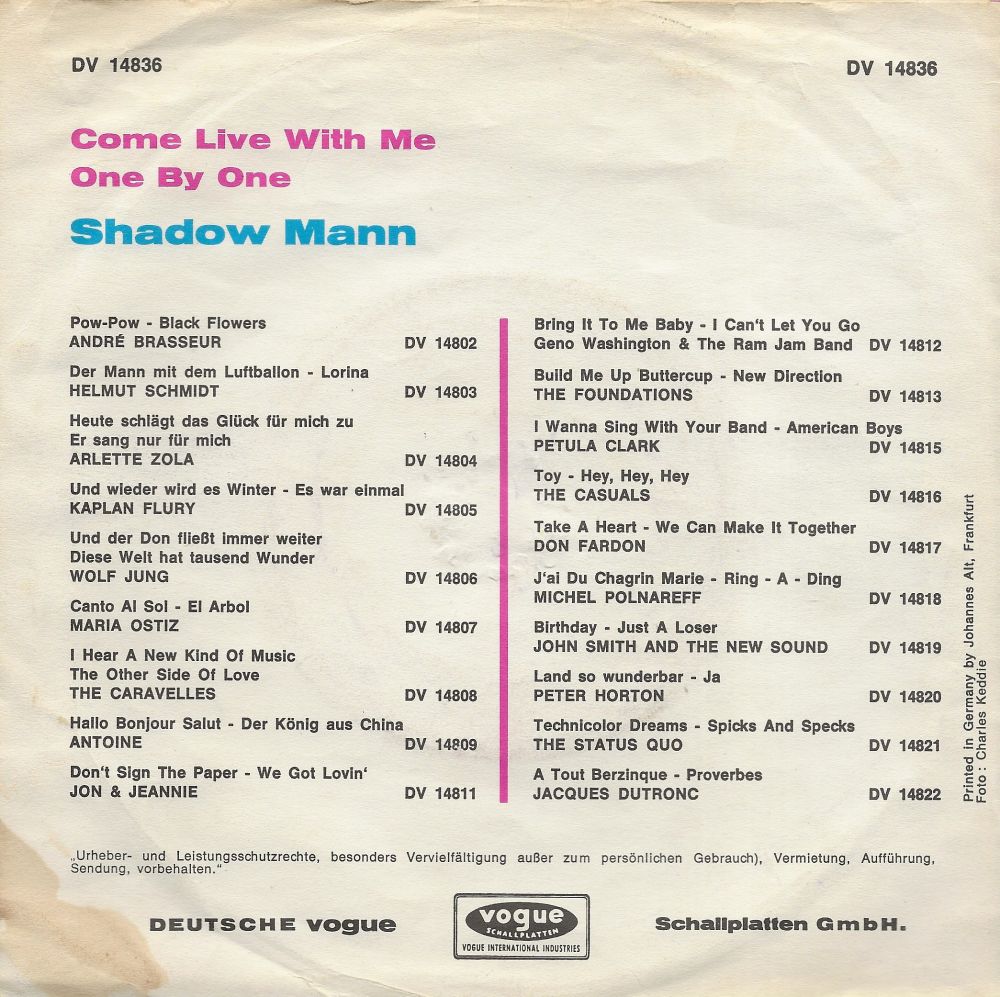12 68….TP 0001….SHADOW MANN..Come Live With Me (TP-0001 A)/One By One (TP-0001 B)