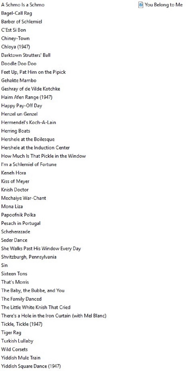 und noch ein paar Songs zwischen 1947-57 Anhänge an diesem Beitrag Dateiname: Katz, Mickey.jpg Dateigröße: 138.33 KB Titel: Katz, Mickey.jpg Heruntergeladen: 127