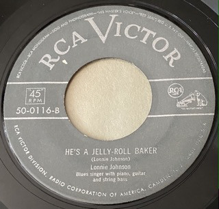 03 51....50-0116 A....Lonnie Johnson Blues singer with piano, guitar and string bass..My Love Is Down/ B....He’s A Jelly-Roll Baker