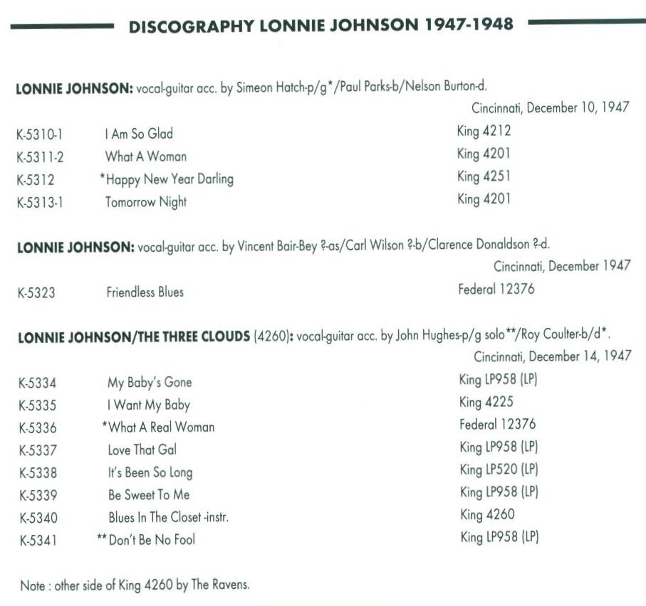 01 48 ?? 51....45-4201-AA....LONNIE JOHNSON..Tomorrow Night (Lonnie Johnson’s Theme Song) (45—5313)/-A….What A Woman (45—5311)