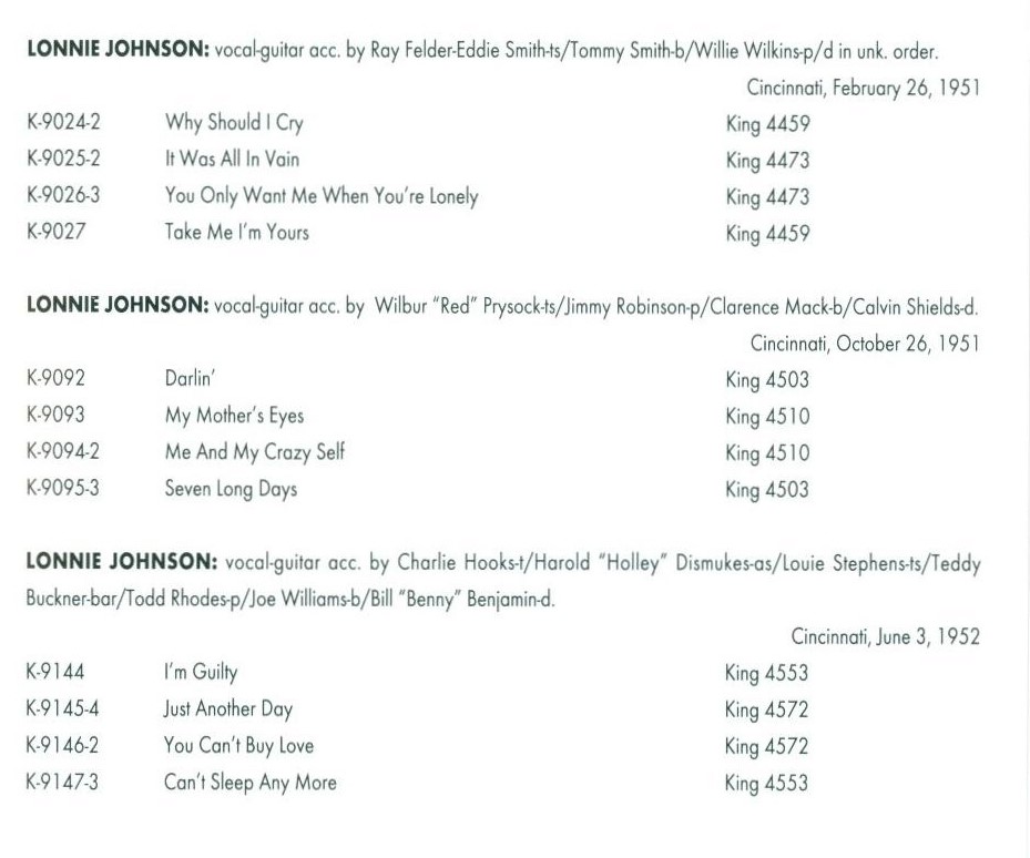 08 52....45—4553....LONNIE JOHNSON..Can't Sleep Anymore (45—K9147)/I'm Guilty (45—K9144)