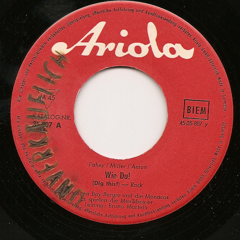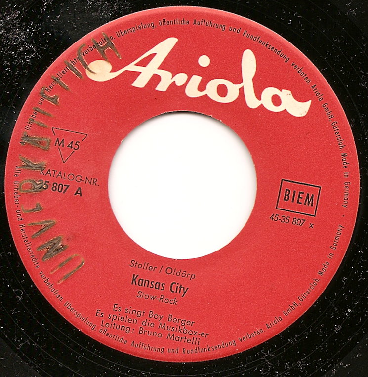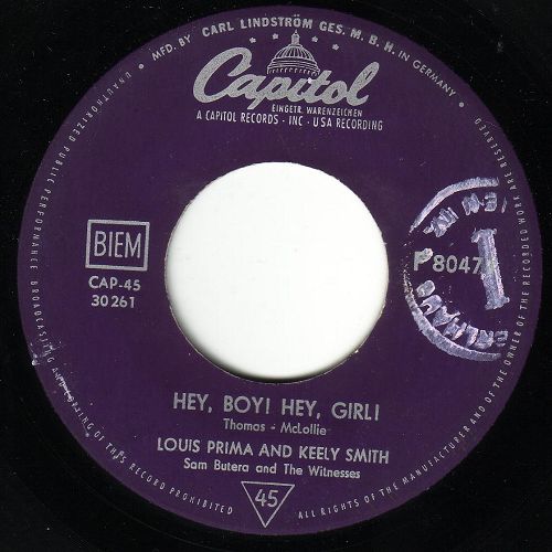 Die Fassung von McLollie selbst aber als 45 RPM vom Juni 58 (die gab es später auch in der 78 RPM-Farbe schwarz), die Fassung von Louis Prima (F 80474) gab es in Amerika offiziell nur auf LP (CAPITOL T-1160) aus 1959 und die Don Rogers-Fassung wurde April 59 veröffentlicht