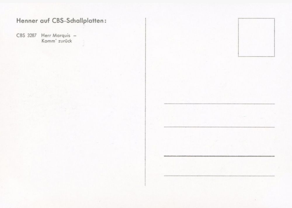 Und eine Polydor-AK Anhänge an diesem Beitrag Dateiname: Henner2.jpg Dateigröße: 54.5 KB Titel: Heruntergeladen: 122 Dateiname: Henner2b.jpg Dateigröße: 52.84 KB Titel: Heruntergeladen: 123