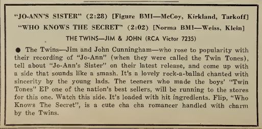 05 58....47-7235....THE TWINS JIM and JOHN..Jo-Ann's Sister (J2PW-2095)/Who Knows The Secret (J2PW-2092)