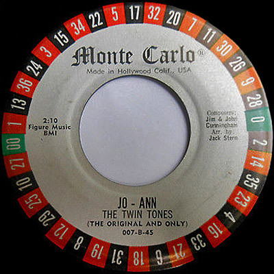 Ich vermute aber, dass es sich bei den Aufnahmen auf dem MONTE CARLO-Label ausschließlich um die Mädels handelt, was ich aber mangels Hörproben, inbesondere für die Nummern 007 und 008, bisher nicht belegen konnte. Aber der Hinweis bei 007 ”(THE ORIGINAL AND ONLY)” deutet darauf hin, dass es sich nur um die Girls handeln kann und dass sie den Cunningham-Titel “Jo-Ann“ auch eingespielt haben, könnte eine Vereinbarung zwecks Ausgleich gewesen sein.