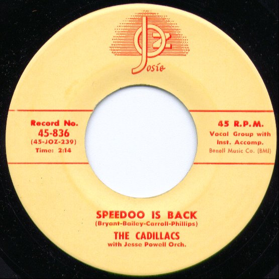 Im Herbst 1955 verfasste Esther Navarro einen Song über Earl "Speedo" Carroll, den Lead-Sänger der Cadillacs: ”Everybody calls me Speedo but my real name is Mr. Earl.” Im Oktober 1955 erschien ”Speedoo”, das sich zum Superhit entwickelte, nachdem The Cadillacs mit ausgeklügelter Choreografie in der Weihnachtsshow von Alan Freed aufgetreten waren. Die Cadillacs hatten eine Bühneshow, die ebenso charakteristisch und einzigartig war wie die der Coasters, und Songs, die ihnen gleich kamen. Von Vorteil für The Cadillacs waren sicherlich auch die geschäftlichen Verbandelungen zwischen Alan Freed und Jerry Blaine. Die R&B-Vokalgruppen nahmen zunehmend mehr Raum in Freed’s Sendungen ein und The Cadillacs gehörten zu seinen Auserwählten. ”Speedoo” erklomm sogar die Pop-Charts bevor überhaupt eine Wertung in den R&B-Listen stattgefunden hatte.