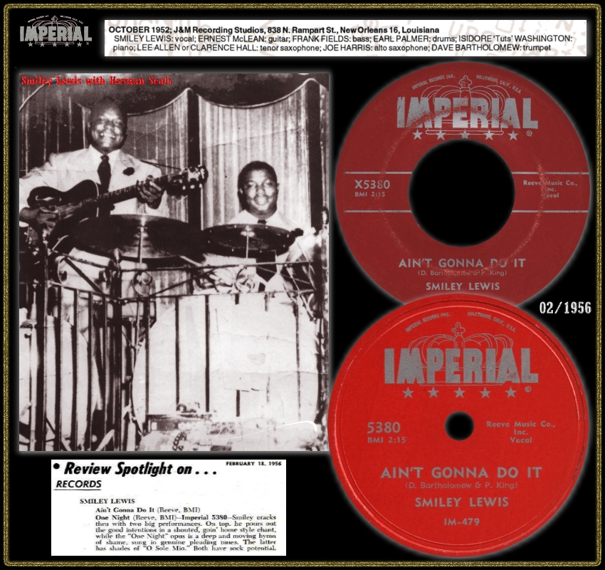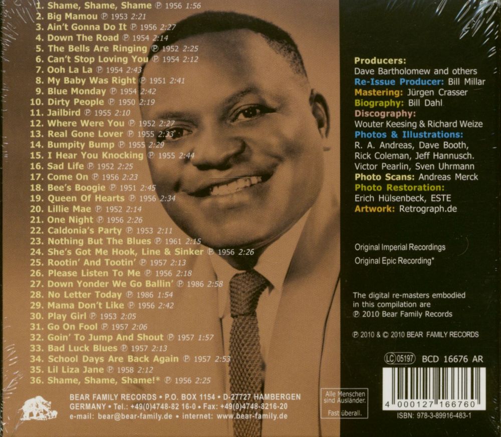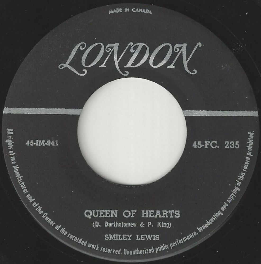 Original - dickes Vinyl, Song ist immer ganz außen und eng geschnitten auf max. 2cm, dann noch gut 1cm dead wax bis zur Auslaufrille, die beiden horizontalen Linien haben einen Abstand von ca. 17mm, "Commodore Music Corp" ist in kleiner Schrift gedruckt, meine Fats Dominos haben alle ein eingekreistes D im dead wax (könnte die Kennung des Künstlers sein)