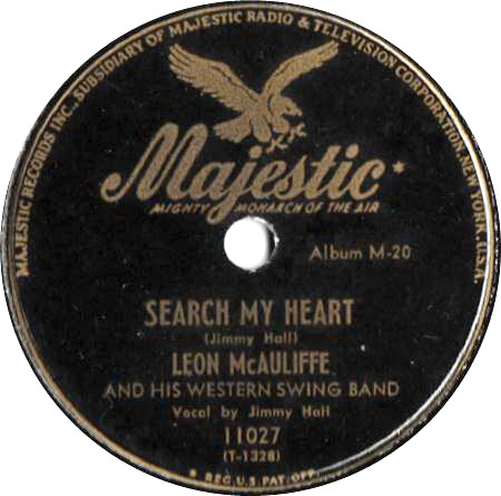 11 51....4-20872....LEON McAULIFFE and his Western Swing Band Vocal Chorus by Jimmy Hall..Makin' Believe You're There/Search My Heart