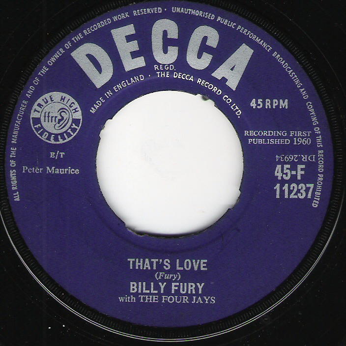 Billy Fury & The Four Jays: "That's Love" / "You Don't Know" (Decca 45-F 11237, 1960)
