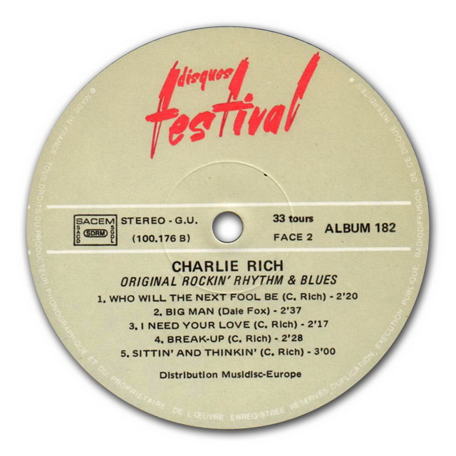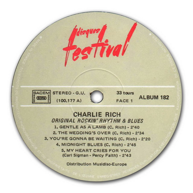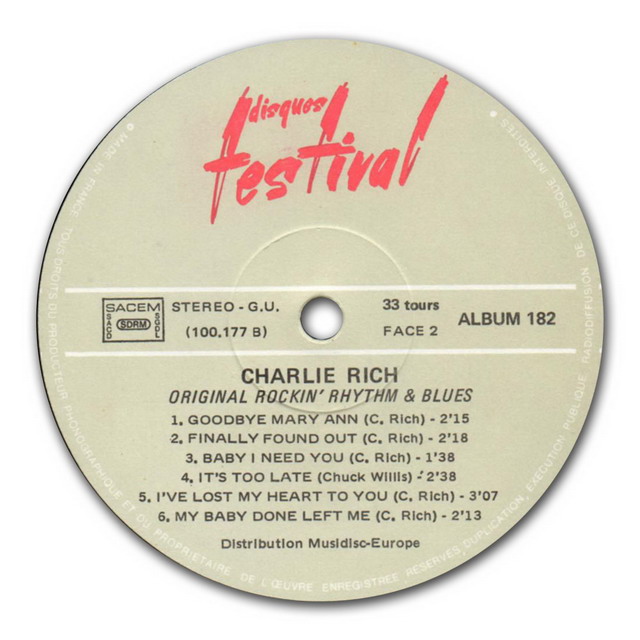 Charlie Rich, begann bei Sam Phillips als Session-Pianist und kam dann im August 1958 groß als Solist auf Phillips International heraus, meist arbeitete er mit Roland Janes-g, Billy Riley-b, J.M. van Eaton-d und Martin Willis-tsax zusammen.