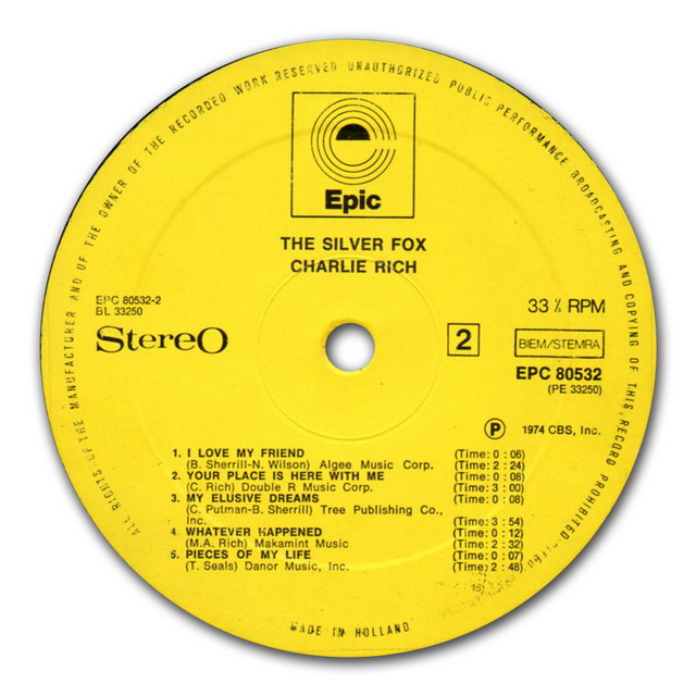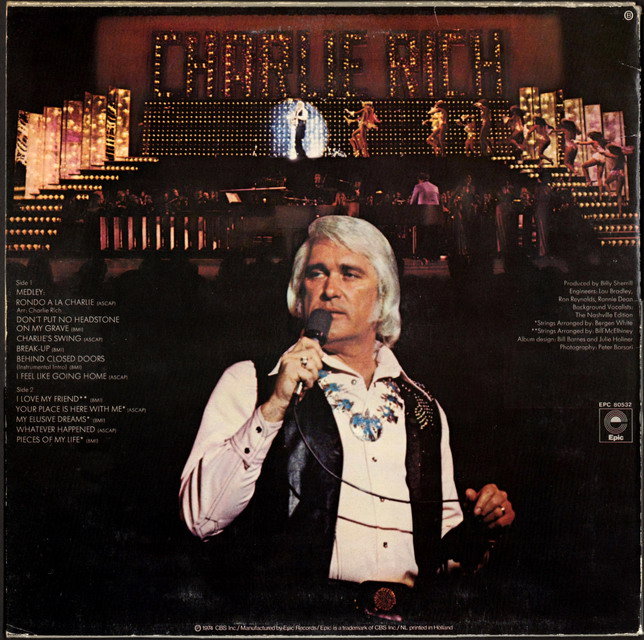 Bei Epic wurden einige durchaus beachtliche Platten produziert. Der Durchbruch kam 1973 mit dem Super-Hit “Behind Closed Doors“ (Epic 10950), das die Spitze der Country-Charts erreichte und sogar in die Pop-Top 20 eindrang. Das Album gleichen Namens wurde mit Gold ausgezeichnet, und Rich erhielt 1974 einen Grammy als Best Male Country Vocal Performer. Noch übertroffen wurde dieser Erfolg mit der nächsten Single, die 1973 weltweit Spitzenplätze erreichte und zum Klassiker wurde: # 1-Hit “The Most Beautiful Girl“ (Epic 11040).