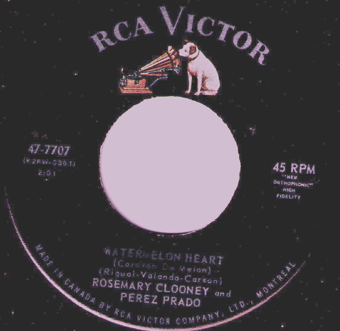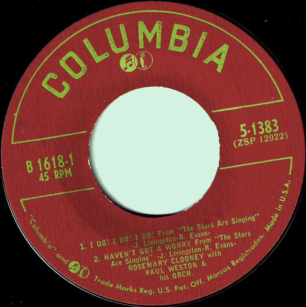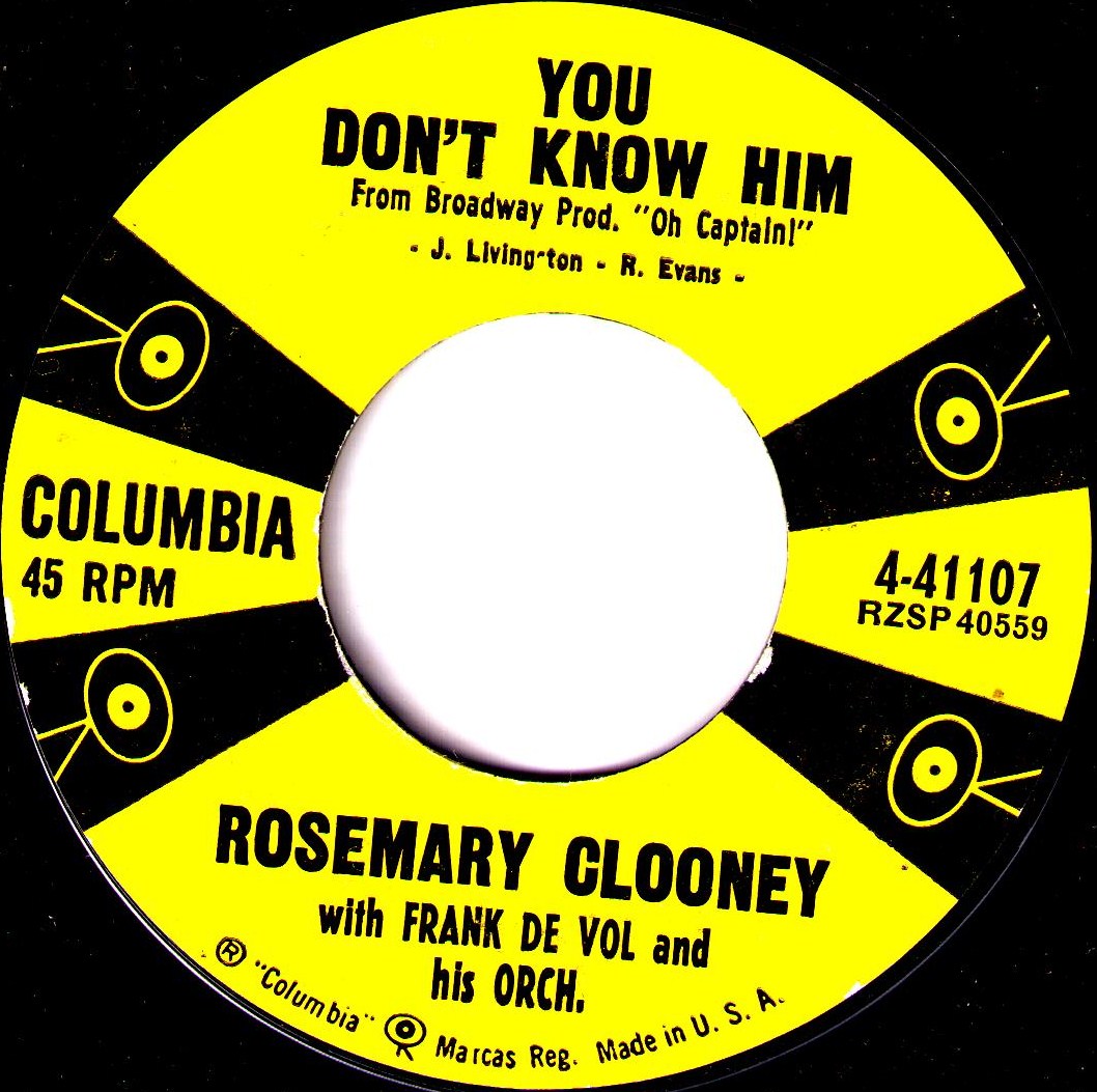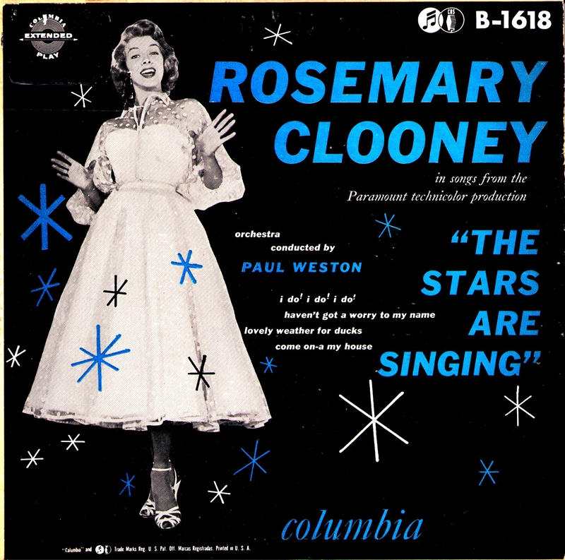Der weibliche Star Anfang der 50er Jahre war neben Doris Day Rosemary Clooney * 23. Mai 1928 in Maysville/Kentucky. Sie wuchs in Cincinnati/Ohio auf und begann dort frühzeitig ihre Karriere als Sängerin, 1945 zusammen mit ihrer Schwester Betty als The Clooney Sisters. Was bei der örtlichen Radiostation WLW begann, setzt sich in den 40er Jahren in Tony Pastor’s orchestra fort. Erste Schallplatten davon wurden seit 1946 für Cosmo Records aufgenommen.