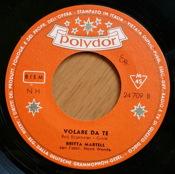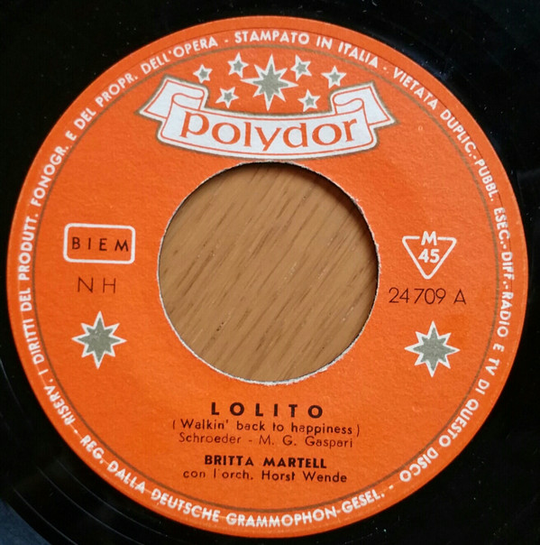 POLYDOR (I) ?? 63....24 709 A....BRITTA MARTELL con l'orch. Horst Wende..Lolito (Walkin' back to happiness)/ B....Volare da te