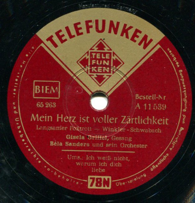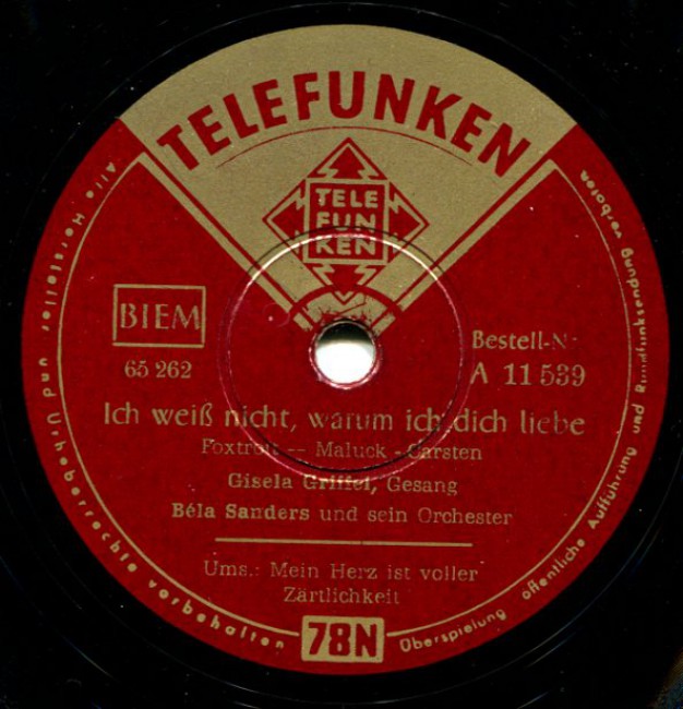 04 54....U 45 539....Gisela Griffel, Gesang Béla Sanders und sein Orchester..Ich weiß nicht, warum ich dich liebe/Mein Herz ist voller Zärtlichkeit
