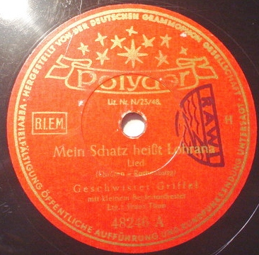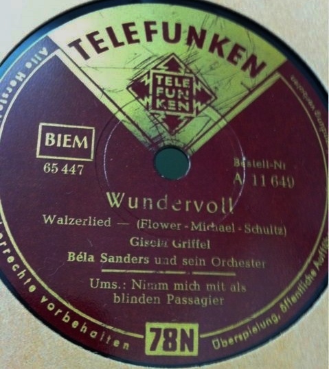 12 54....U 45 649....Gisela Griffel Béla Sanders und sein Orchester..Wundervoll/Nimm mich mit als blinden Passagier