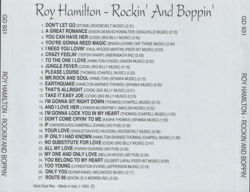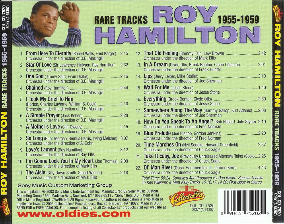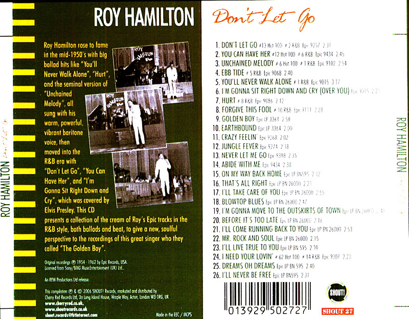 Für die Bio von Roy Hamilton hat Volker bereits am Beginn dieses Threads gesorgt. Es fehlt daher nur noch die übersichtliche 45er-Single-Disco mit allen mir derzeit bekannten Daten.