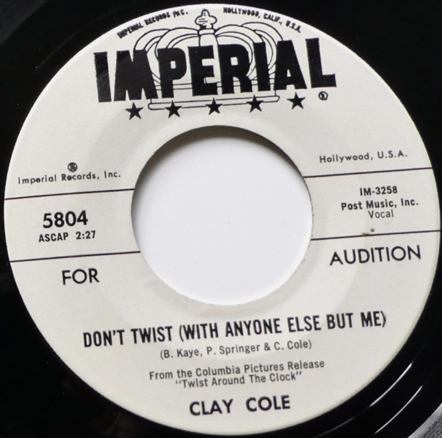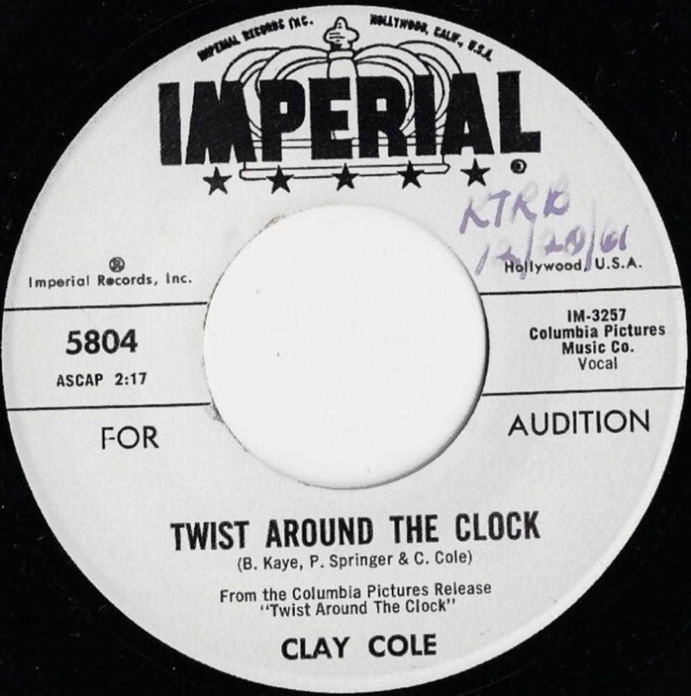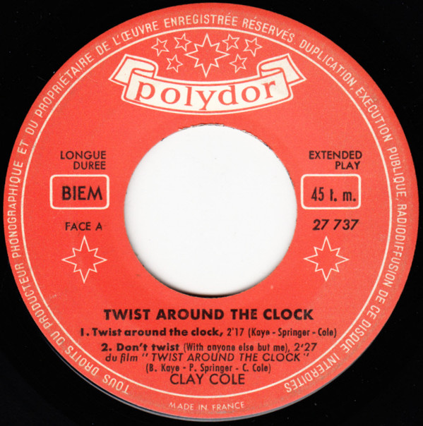 Um bei Clay Cole zu bleiben, in Frankreich war POLYDOR für die Übermahme von IMPERIAL-Masters zuständig und da dort nur EPs auf den Markt kamen, brauchte man zwei weitere Titel zu der Film-Single. Glücklicherweise hatte Clay Cole schon bereits vorher eine IMPERIAL-Single veröffentlicht, die hier gut zur Auffüllung geignet war. Somit kamen beide IMPERIAL-Singles von Clay Cole unter den Namen "Twist Around The Clock" auf den Markt, die "Fülltitel" haben aber mit den Film nichts zu tun. Die Franzosen machen ja schöne Plattenhüllen, aber inhaltlich sind sie extrem locker. Vor kurzem wurde hier im Forum eine auf den Film "Rio Bravo" bezogene EP aus Frankreich gepostet, wovon lediglich ein einziger Titel überhaupt einen Bezug zu Rio Bravo hatte, aber was soll's.