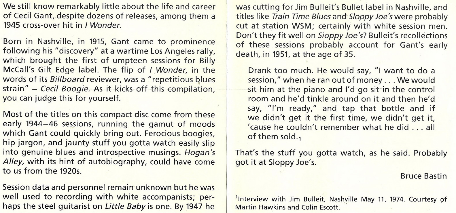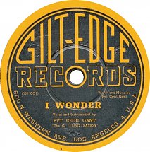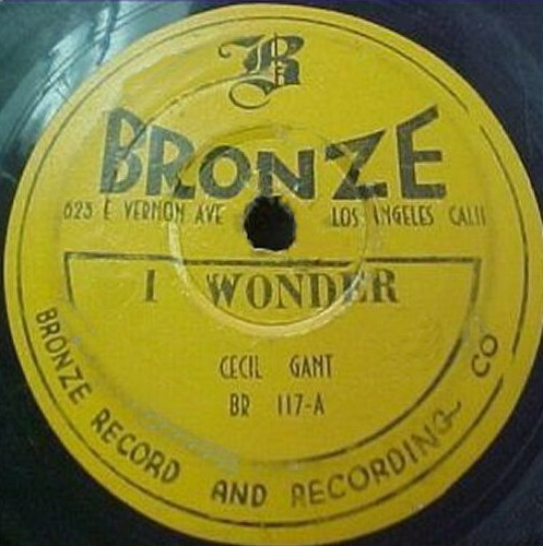 in Ergänzung zu meiner Disco möchte ich voran schicken, dass Cecil Gant einige Monate vor seiner ersten Gilt Edge-Aufnahme (etwa im Juni 1944) “I Wonder“ für das kleine Label West Coast, Bronze Record and Recording Co., Los Angeles, aufgenommen hatte (siehe Billys Scan). Eine Neuaufnahme für Gilt-Edge wurde dann in der Garage des Herstellers Cliff McDonald gemacht, der das fertige Produkt an Gilt-Edge verkaufte.