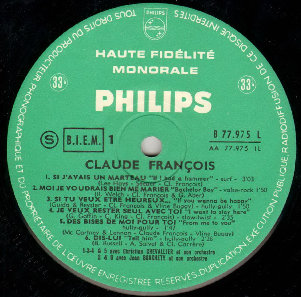 Claude Francois mit "Des bises de moi pour toi" von 1963,