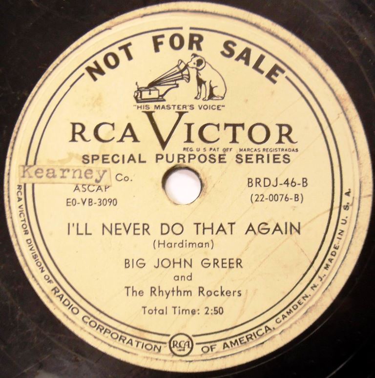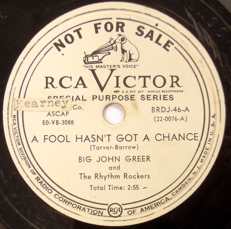 Next in 1953, the Du Droppers backed up Big John Greer on a March 23 session that produced three sides: “Ride Pretty Baby“, “Don't Worry About Me“ and “Confusion Blues“ (which starts off with an interchange between J.C. Ginyard and Big Bob Kornegay). The first two were released on RCA (with the Du Droppers uncredited) in summer.