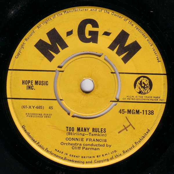 | Information: | Connie Francis - Your Other Love MGM S 551 |