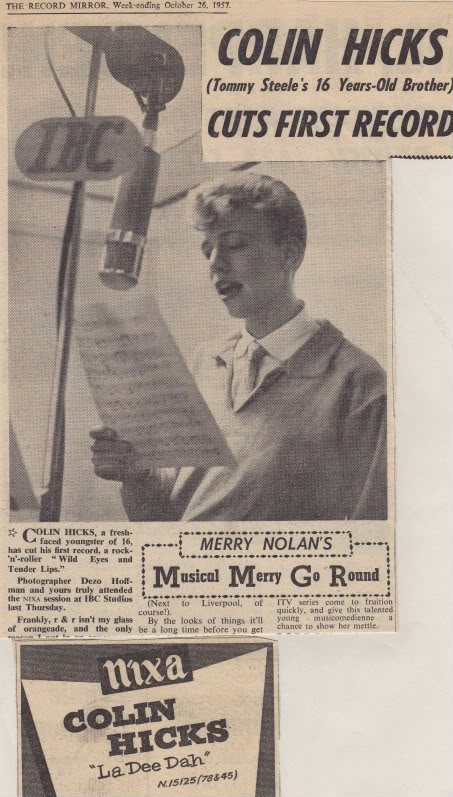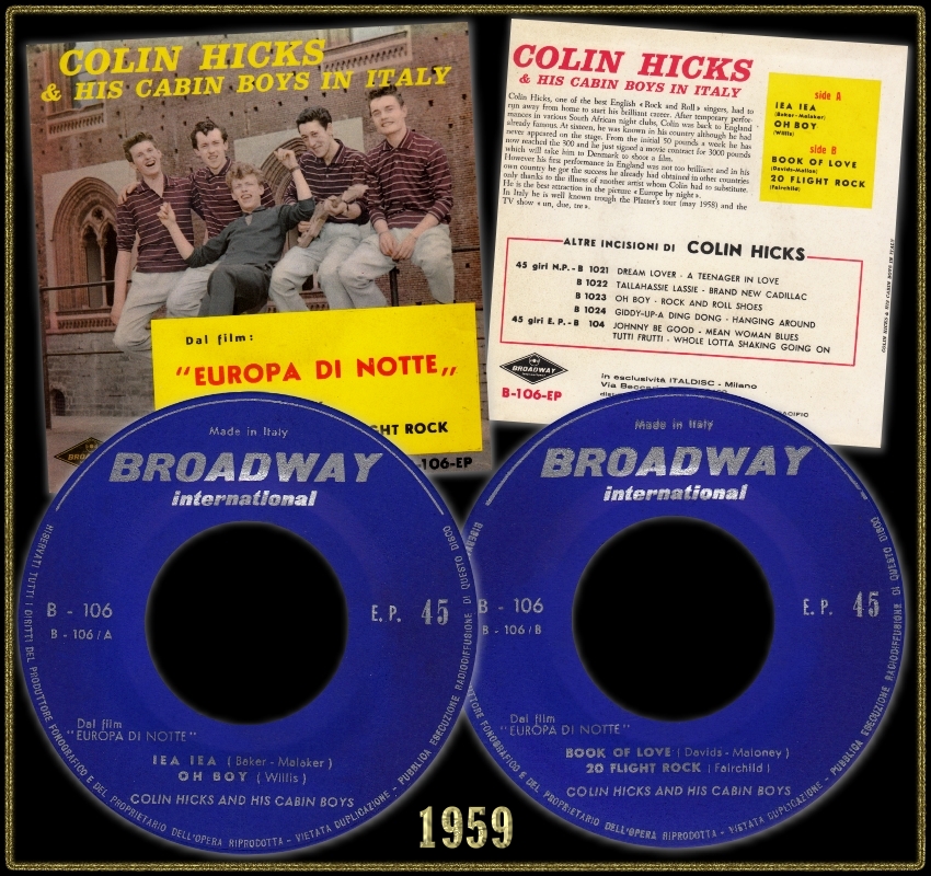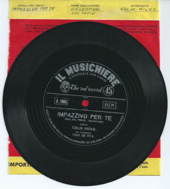 THE RED RECORDS heißt ein italienisches Label das neben ihrem normalen Programm auch für die Musik-Zeitschrift "Il Musichiere" einseitige Flexis herstellte, die dieser Zeitschrift beigelegt wurden. Diese Beilage-Flexis gab es in allen möglichen Farben, es gab aber auch sehr viele Schwarze dabei, wie jene von Colin Hicks, die ich im Netz aufgestöbert habe.