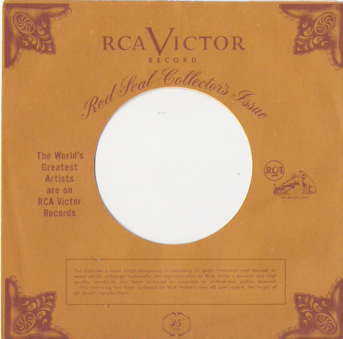 Deine zweite Hülle mit Nummer ist eindeutig an den Beginn der Entstehung der Vinyl-Scheibe zu setzen. "Red Seal" war der Name der Serie für klassische Musik bei RCA Victor. Den Begriff "Red Seal" gab es als Zusatz auf jeder RCA Vicor Klassik-Veröffentlichung. Den Begriff "Collector's Serie" verwendete RCA am Beginn der Vinyl-Aera auf den Hüllen der ersten 45er, da es sich um bereits auf Schellack (78er) veröffentlichte Titel handelte die für den "Sammler" auf das neue System übertragen wurden