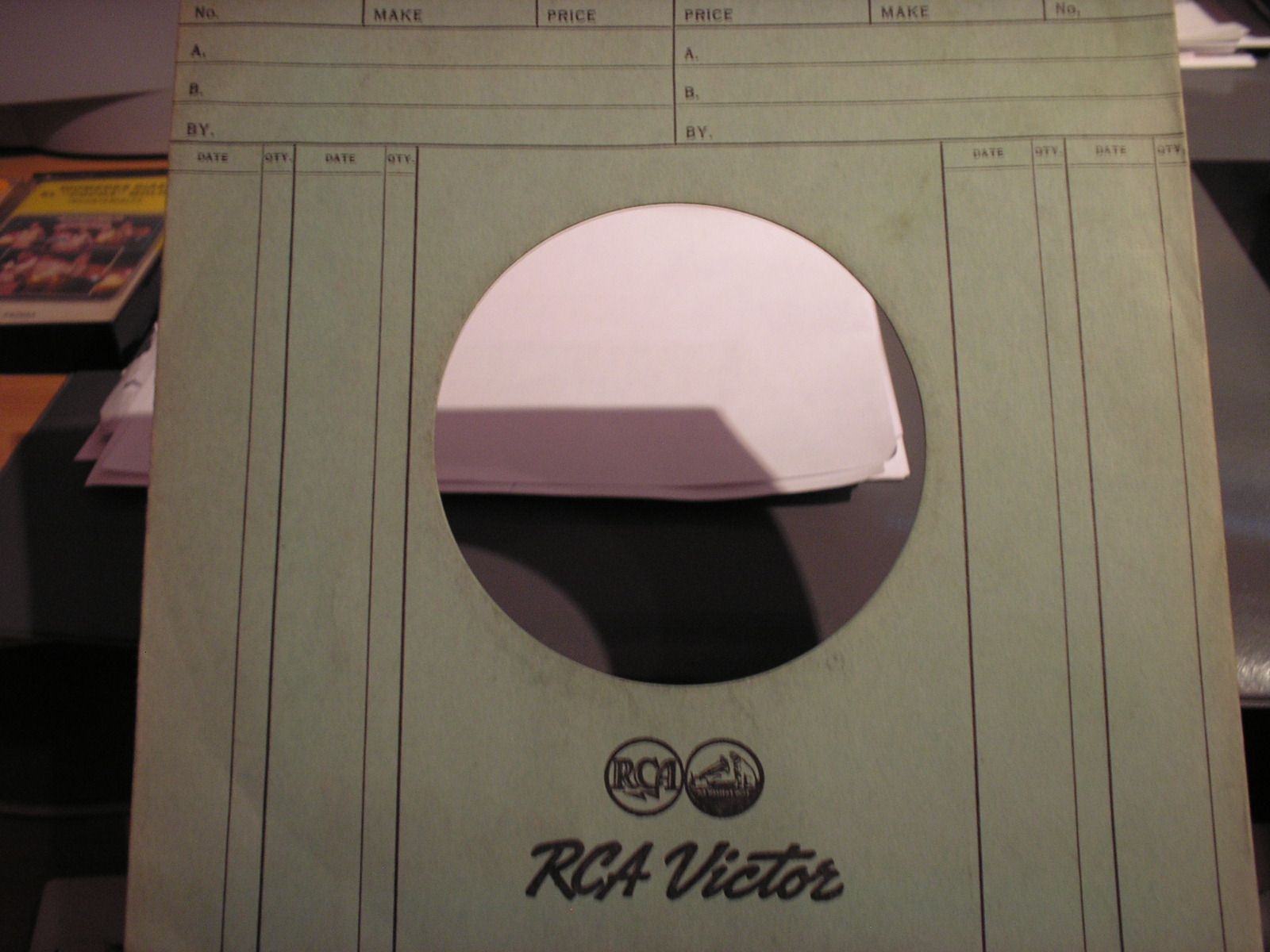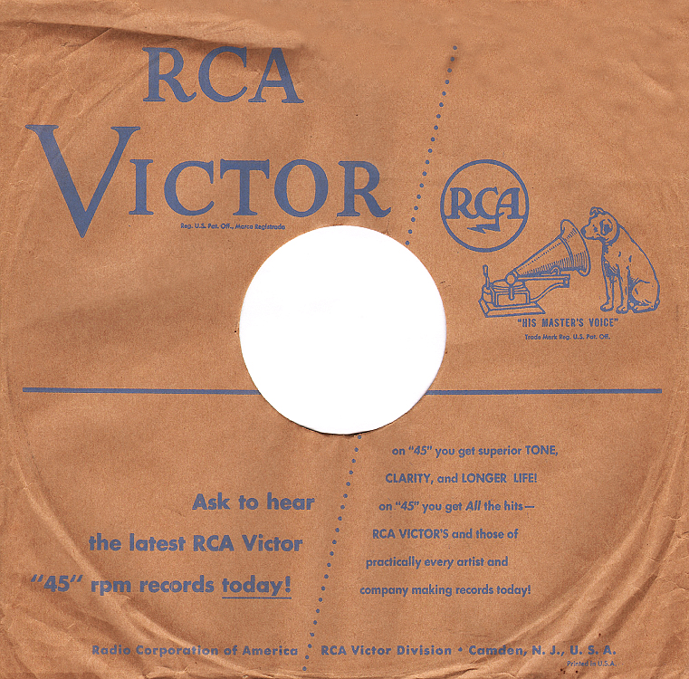 Hallo nochmals, ich bin mal auf eine kuriose RCA-Victor Hülle gestossen. Ich besitze ganze zwei Exemplare davon, allerdings nicht die passenden Singles.