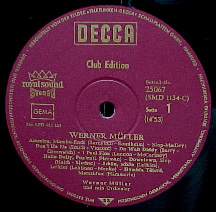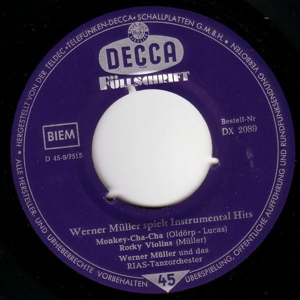 1958 läuft der Vertrag bei Polydor aus u. WERNER MÜLLER wechselt mit dem RIAS-Tanzorchester zu Teldec, übernimmt im Zuge eines Exklusivvertrages die dortige Schallplattenproduktion (teilweise zusammen mit SIGRID VOLKMANN) und feierte besonders mit Veröffentlichungen zusammen mit CATERINA VALENTE ab Beginn 1959 sehr große Erfolge,