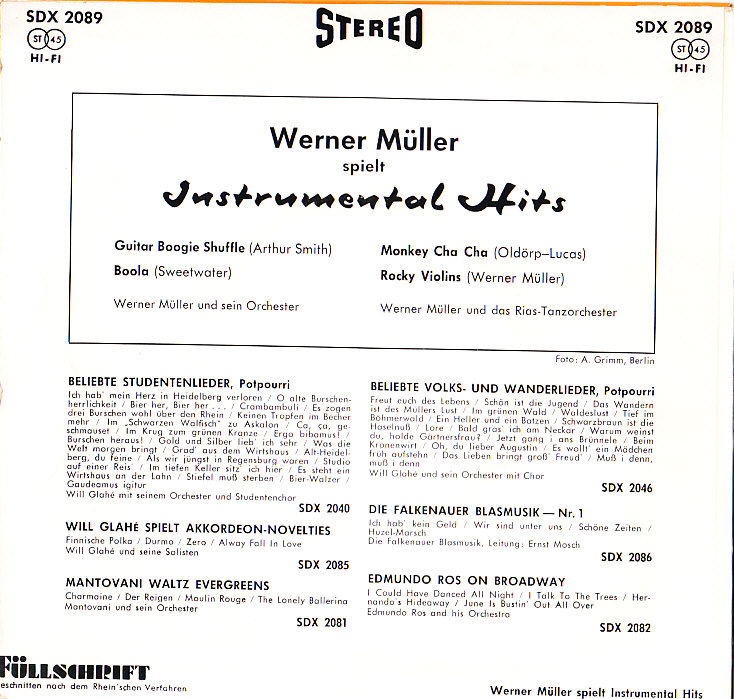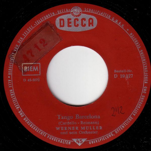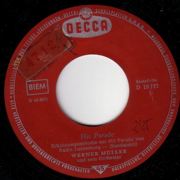 ab Herbst parallel Exklusivvertrag bei der Deutschen Grammophon (Polydor u.a. "Sport Und Musik"-1951 (Wochenschau-Thema), "Siboney"-1953, "Blende Auf"-1954, "Malaguena"-1954 (& CATERINA VALENTE), "Lullaby Of Broadway"-1955 u. Brunswick),