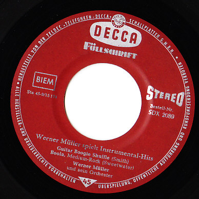 WERNER MÜLLER-ldr, arr, HANNE WILFERT-tp, HARRY SAMP-p, HARRY GABRIEL-tp, RUDOLF KRÜGER-tp, HERMANN PLATO-tb, KURT MASNICK-tb, HARALD EMMELMANN-tb, MANFRED GROSSMANN-tb, HEINZ SCHÖNBERGER-cl, as, ERHARD WENIG-ts, ADI FEUERSTEIN-ts, fl, HEINZ KAMBERG-as, HELMUT BRANDT-bars, GÜNTHER SCHEMMLER-p, HEINZ CRAMER-g, ALEX MACHOWIAK-b, HEINZ NIEMEYER-d plus stringsection mit HANS BERRY-v, viola, cello, HEINZ ALISCH-arr, WOLFGANG FÖRSTER-arr
