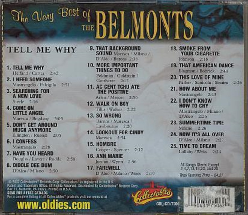 Drei newyorker Burschen, geboren und aufgewachsen in Belmont, auch"Little Italy Of The Bronx" genannt, bildeten das Vokal-Trio The Belmonts. Es waren: