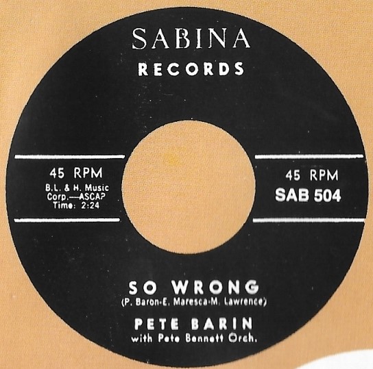 with PETE BENNETT ORCH. ..So Wrong (SAB 504 A)/Broken Heart (SAB 504 B)