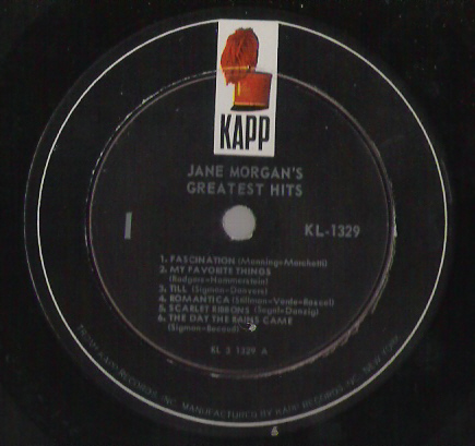Erstmal Danke für dein Beitrag , das Lied "The Day The Rains Came" von der London 20210 habe ich noch auf einer USA LP von Jane Morgan gefunden . Jane Morgans Greatest Hits , KAPP KL-1329 .