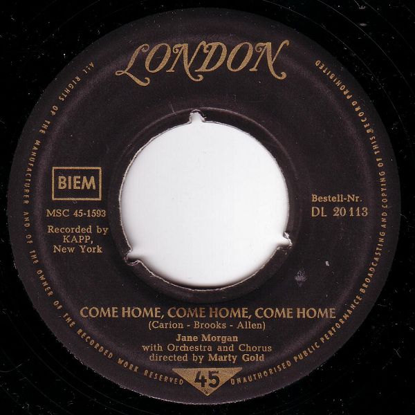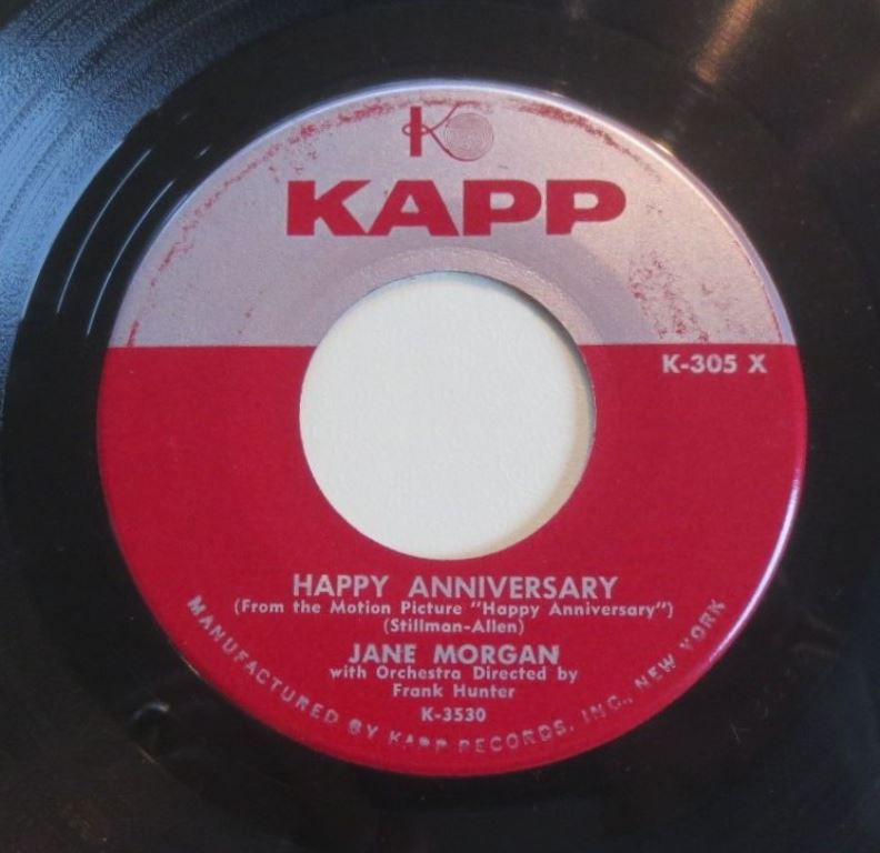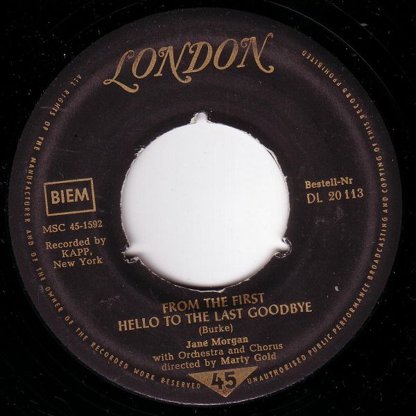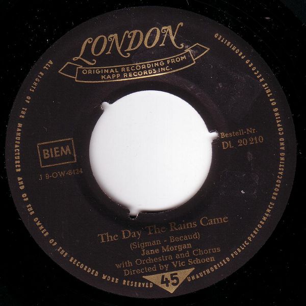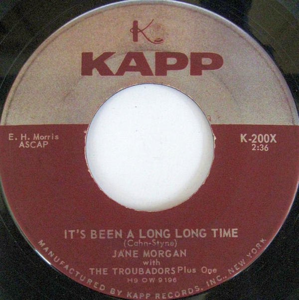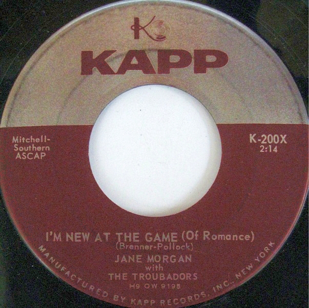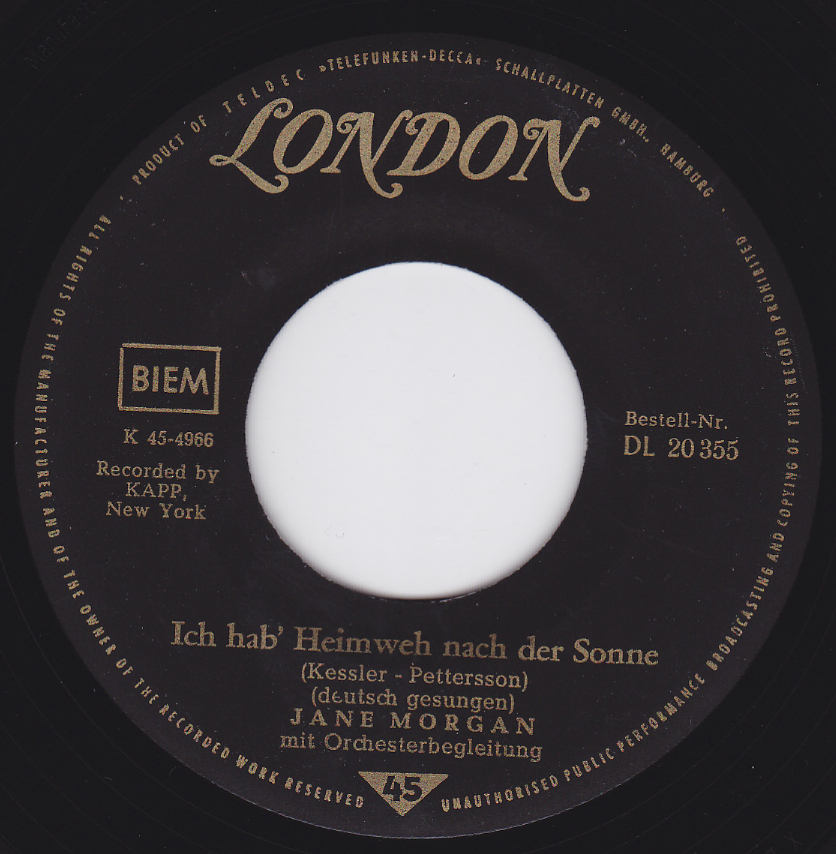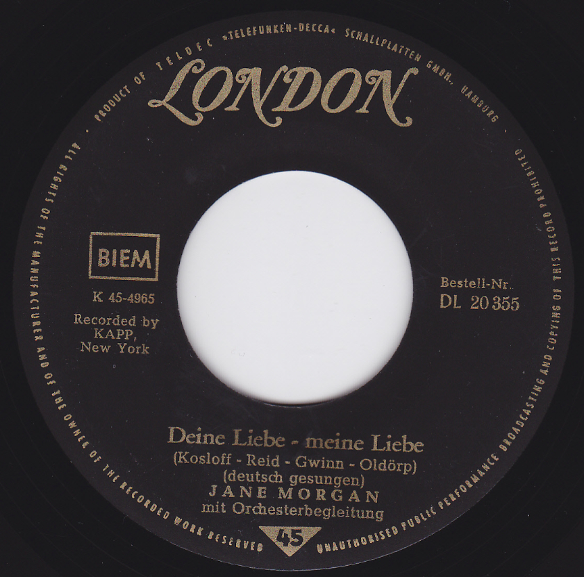 Der folgende Scan dient nur als interessanter Vergleich, da Jane Morgan's "Fascination" mit einer KAPP-Pressung, die allerdings die Adresse der Musikvertrieb AG, Zürich, trägt, zu uns kam