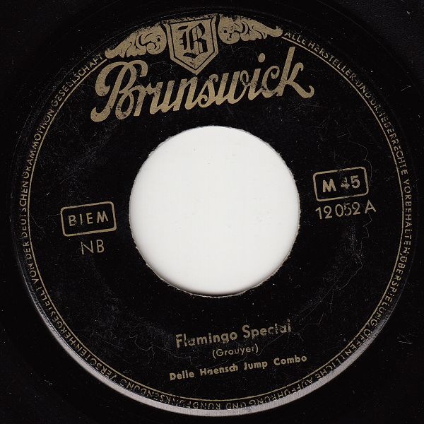Seine Solo-Veröffentlichung auf 45 RPM-Single: BRUNSWICK (D) 07 55....12 052 A....Delle Haensch Jump Combo..Flamingo Special/ B....Manuskript Blues