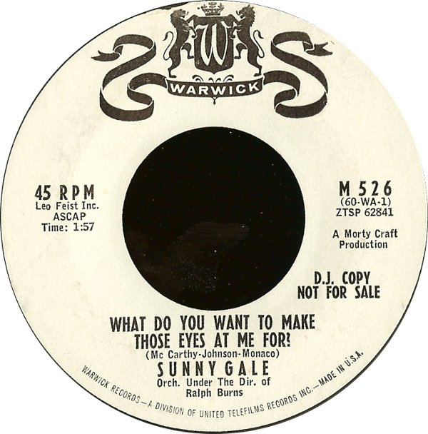 01 60....M 5 2 6….SUNNY GALE Orch. Under The Dir. of Ralph Burns..What Do You Want To Make Those Eyes At Me For? (60-WA-1 - ZTSP 62841)/Falling Star (60-WA-2 - ZTSP 62840)