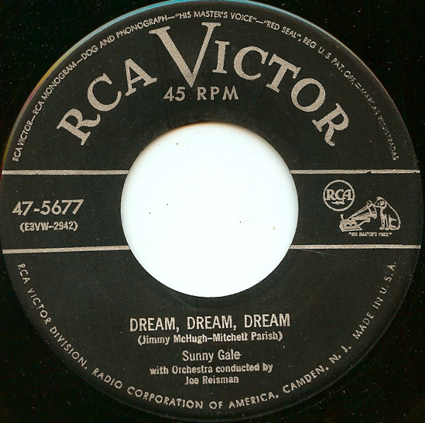 03 54….47-5677….Sunny Gale with Orchestra conducted by Joe Reisman..Dream, Dream, Dream (E3VW-2942)/Sunny Gale with Orchestra and Male Quartet conducted by Joe Reisman..Don't Cry, Mama (E3VW-2492)