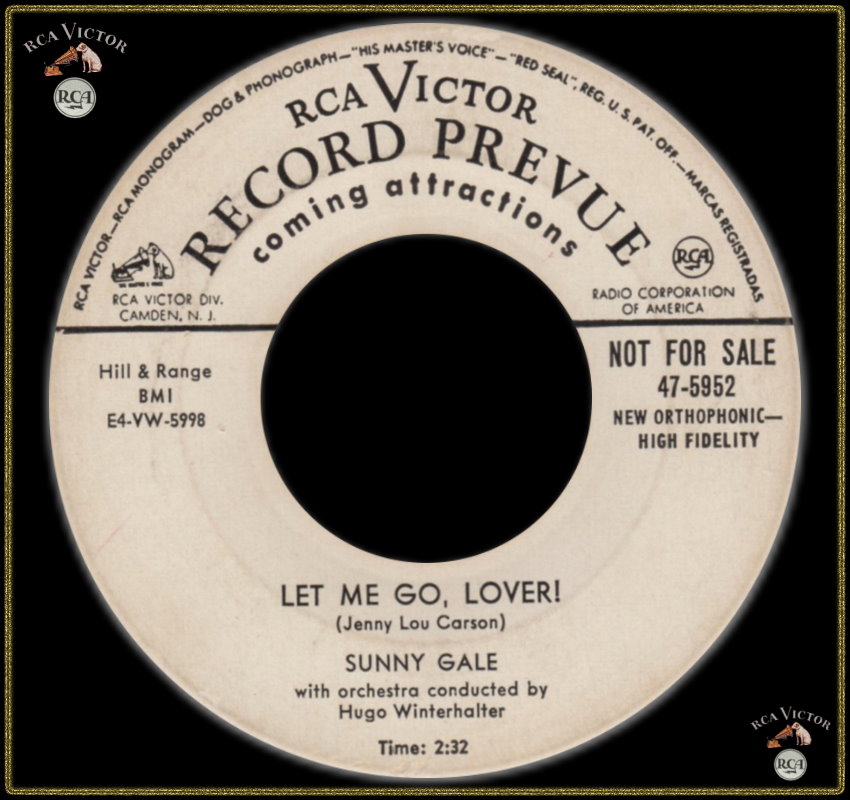 11 54….47-5952….Sunny Gale with Orchestra conducted by Hugo Winterhalter..Unsuspecting Heart (E4VW-5997)/Let Me Go, Lover (E4VW-5998)