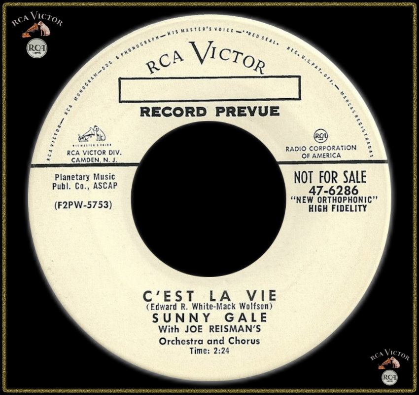 10 55….47-6286….SUNNY GALE With JOE REISMAN'S Orchestra and Chorus..C'est La Vie (F2PW-5753)/Sunny Gale With Orchestra Conducted By JOE REISMAN..Looking Glass (E3VW-2944)